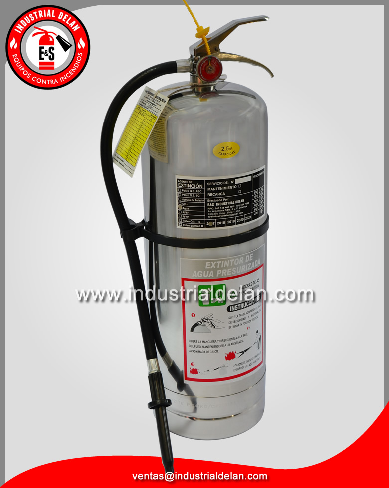 Extintor de agua desmineralizada, es el que reemplaza al Halon 1211 y sirve para apagar fuego clase AC (Materiales secos y equipos electrónicos sensibles). No conduce la energía eléctrica.