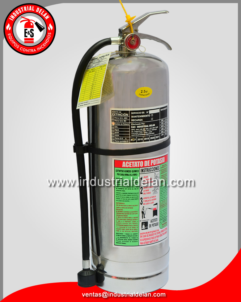 Los extintores de acetato de potasio son capaces de extinguir fuegos de Clase K. Es uno de los mejores para ser usados en cocinas de restaurantes e industriales.